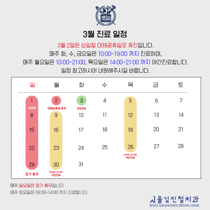 26년 3월 진료일정 안내